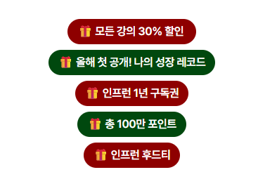 | [인프런] 2025년 할인 요약 총정리! (0) | 2026.01.01 |