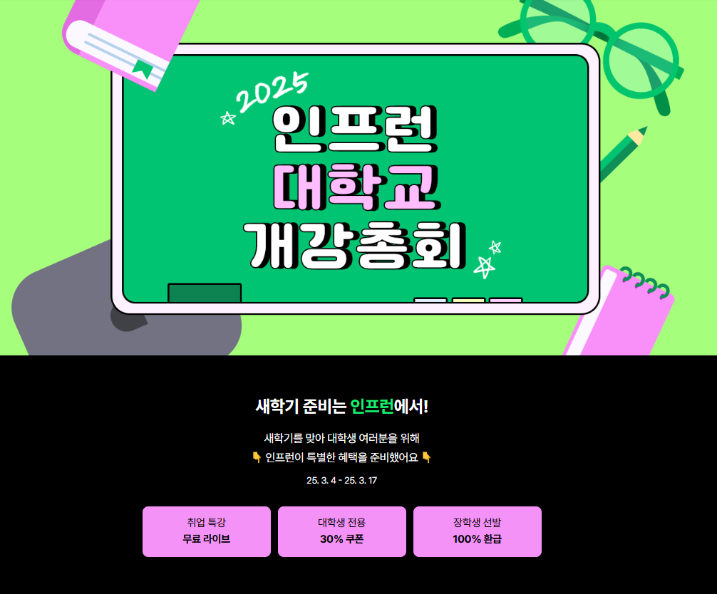 | [인프런] 스승의날 이벤트, 선착순 최대 90%할인 ㄷㄷ (1) | 2025.05.16 |