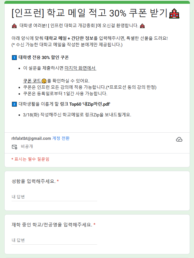 하단의 링크로 들어가서 구글폼을 적으면 30% 할인코드가 발급됩니다