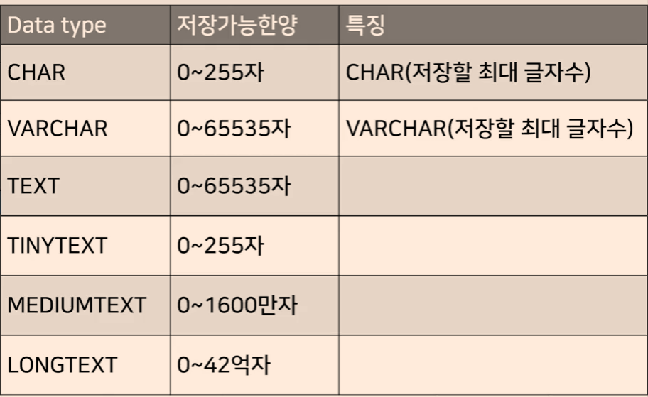 오라클 같은 타 DBMS에서는 varchar2라고 써야함