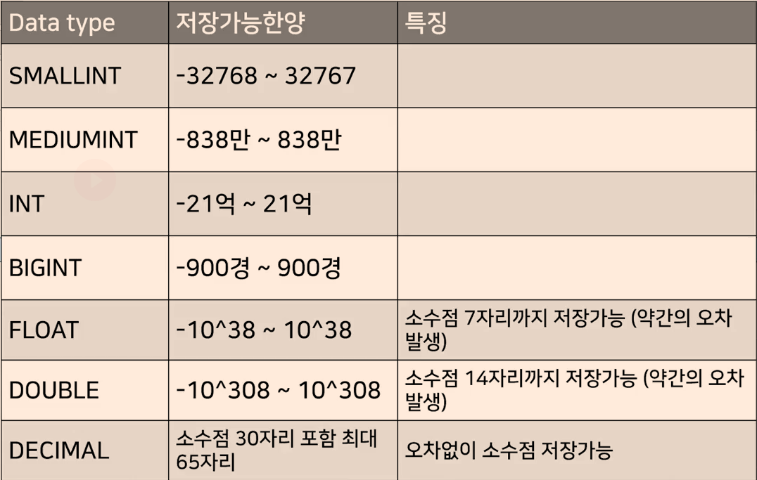 데이터를 넣기 위한 다양한 타입들이 있다