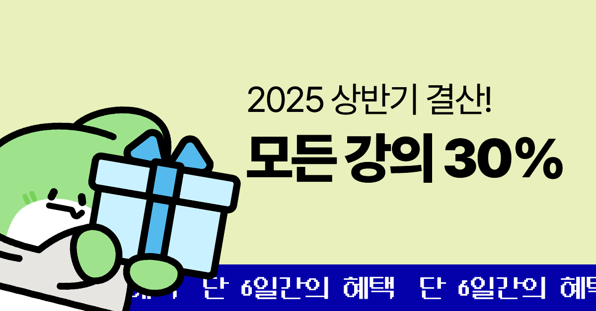 | 8/15~8/18 4일간 전 강의 25% 할인! (0) | 2025.09.08 |